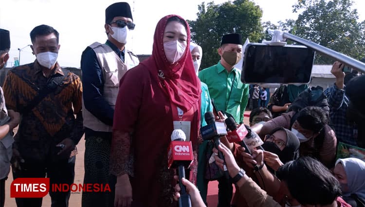 TIMES Sangatta/Putri Abdurrahman Wahid (Gus Dur) Yeny Wahid saat diwawancarai oleh awak media. (FOTO: Moh Ramli/TIMES Indonesia)