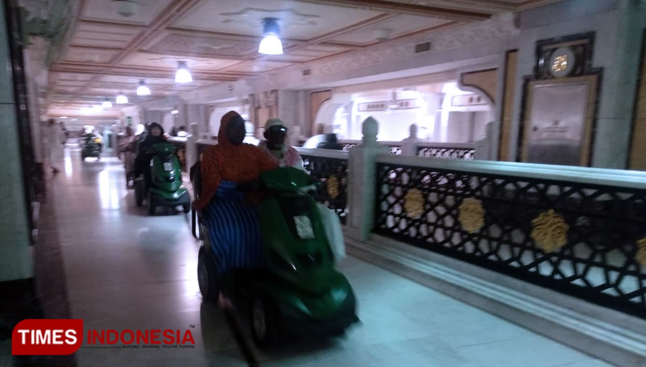TIMES Sangatta/Jemaah haji Indonesia melaksanakan Tawaf dengan mengendarai skuter listrik di Masjidil Haram. (FOTO: Basuni for TIMES Indonesia)
